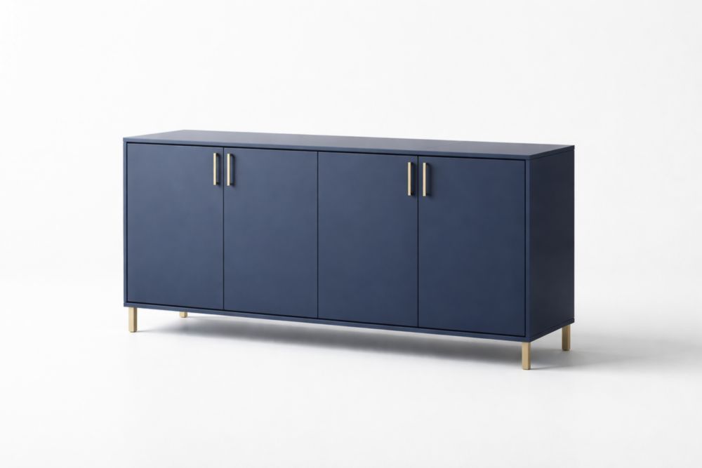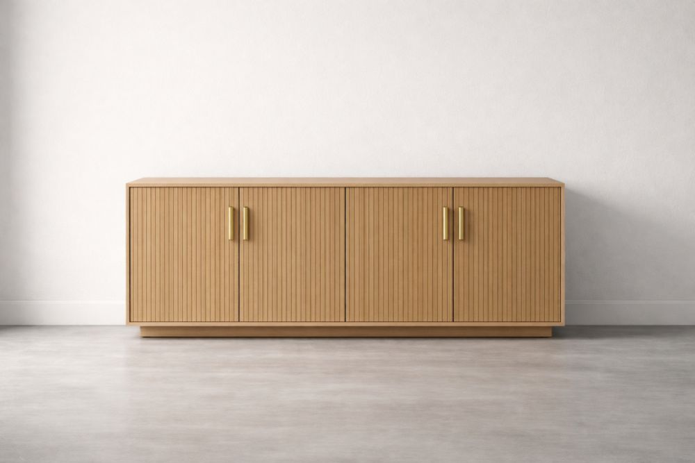Credenza in Legno Massello a Quattro Ante con Maniglie Dorate