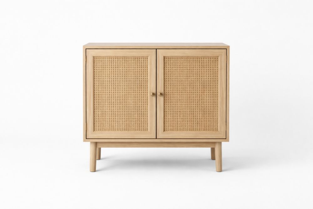 Credenza a 2 Ante in Legno di Rovere con Intreccio