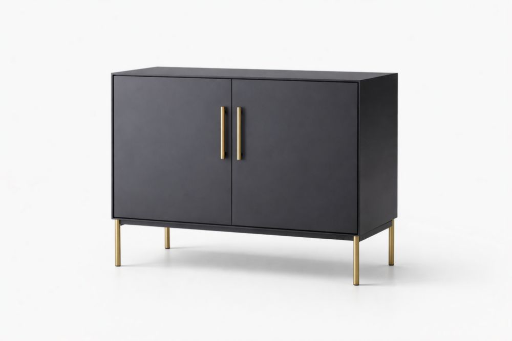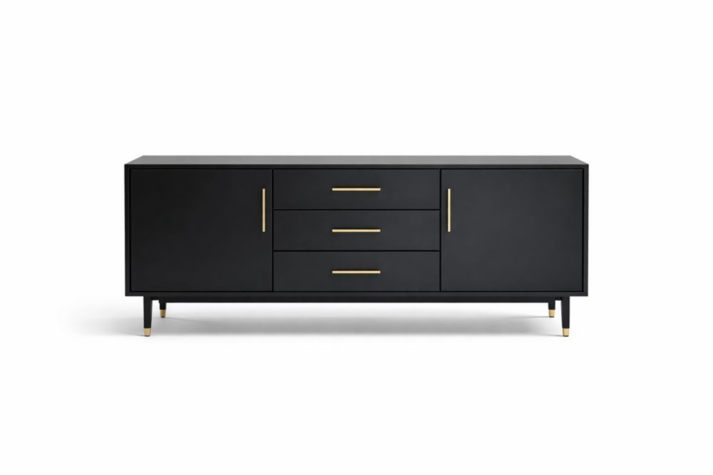 Credenza in MDF nero con maniglie dorate 150x45x75 cm(Lu x L x H)