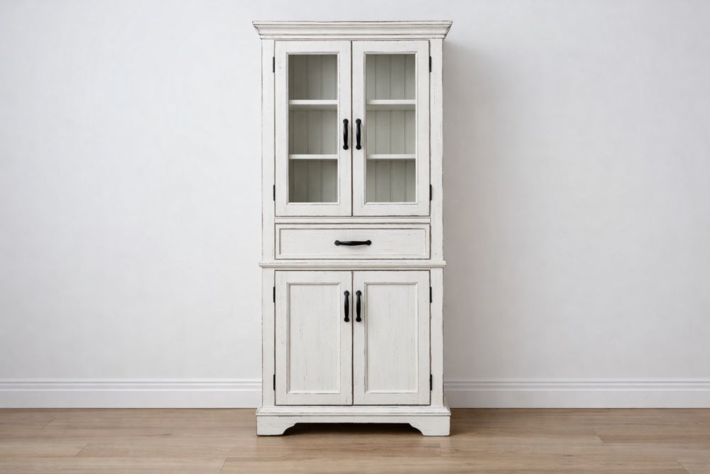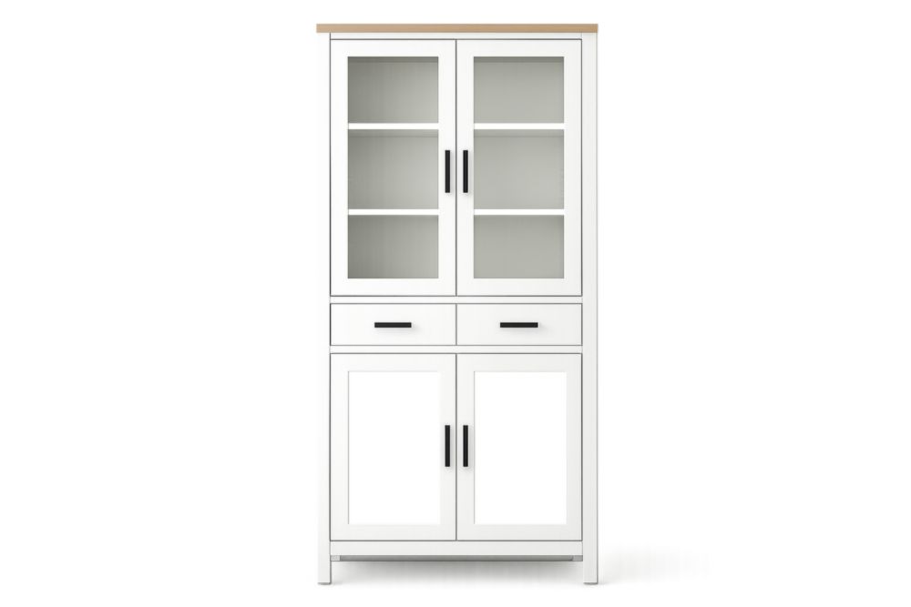 Buffet con ante in vetro e cassetti in MDF bianco, altezza 180 cm