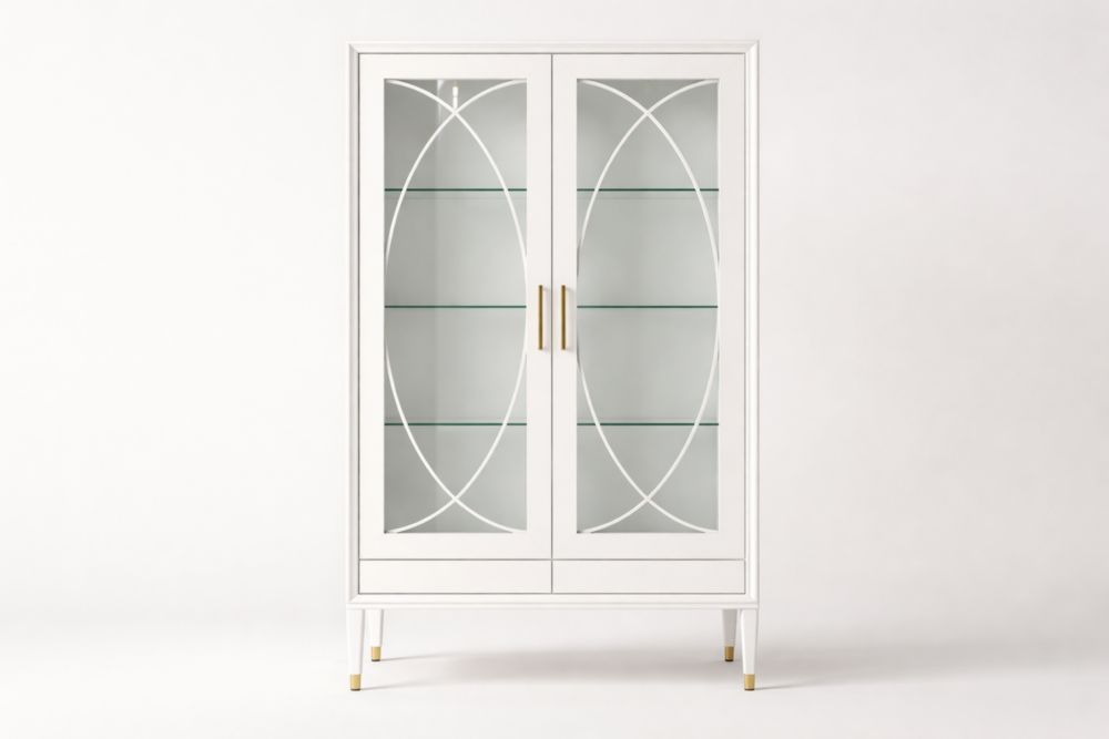 Vetrine bianca con porte in vetro temperato e ripiani in MDF