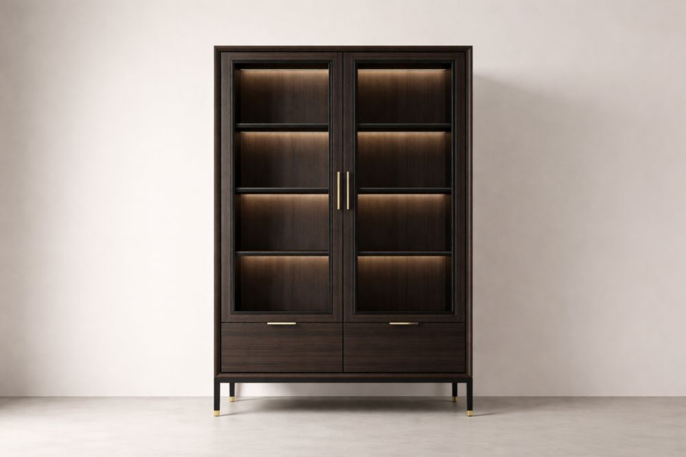 Vetrina in legno con ante in vetro temperato marrone