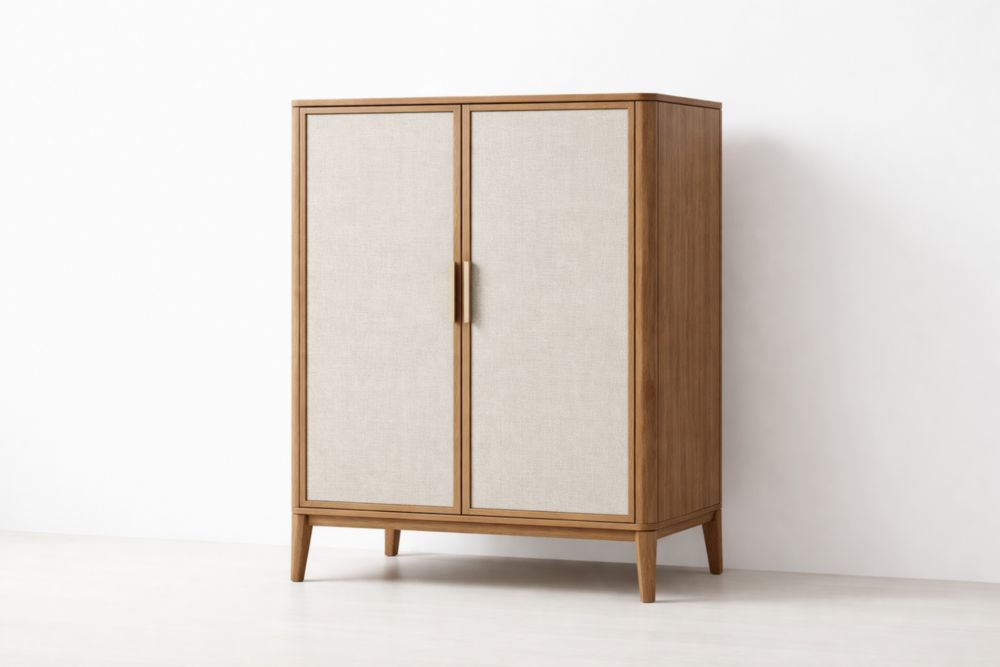 Mobili contenitore in Legno Massello Due Ante Rivestito in Tessuto Poliestere