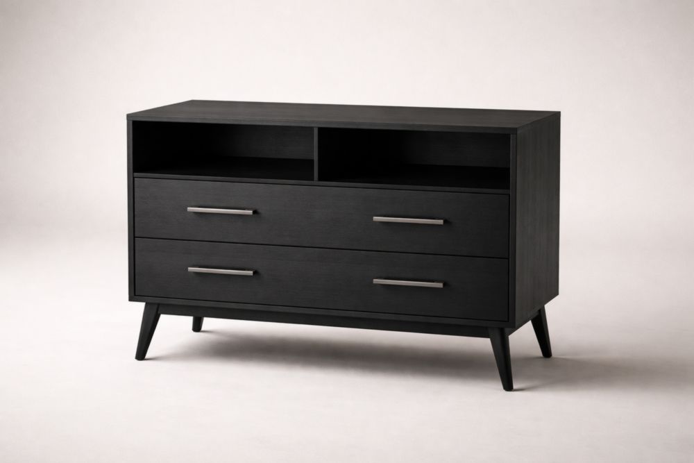 Cassettiera in legno MDF nero con gambe inclinate