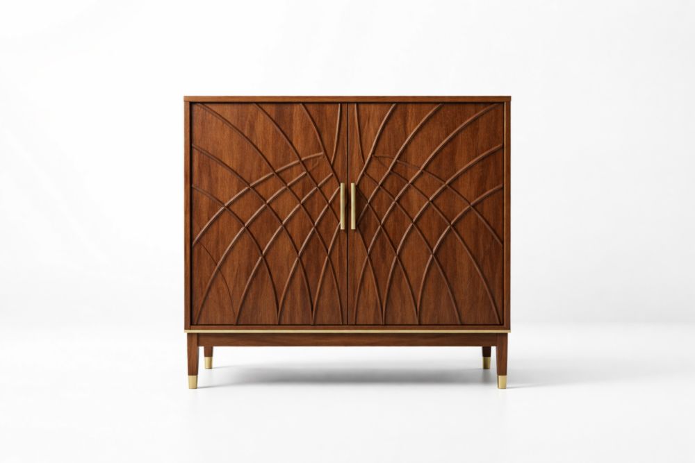 Mobili contenitore in Legno Massello con Dettagli Decorativi Marrone