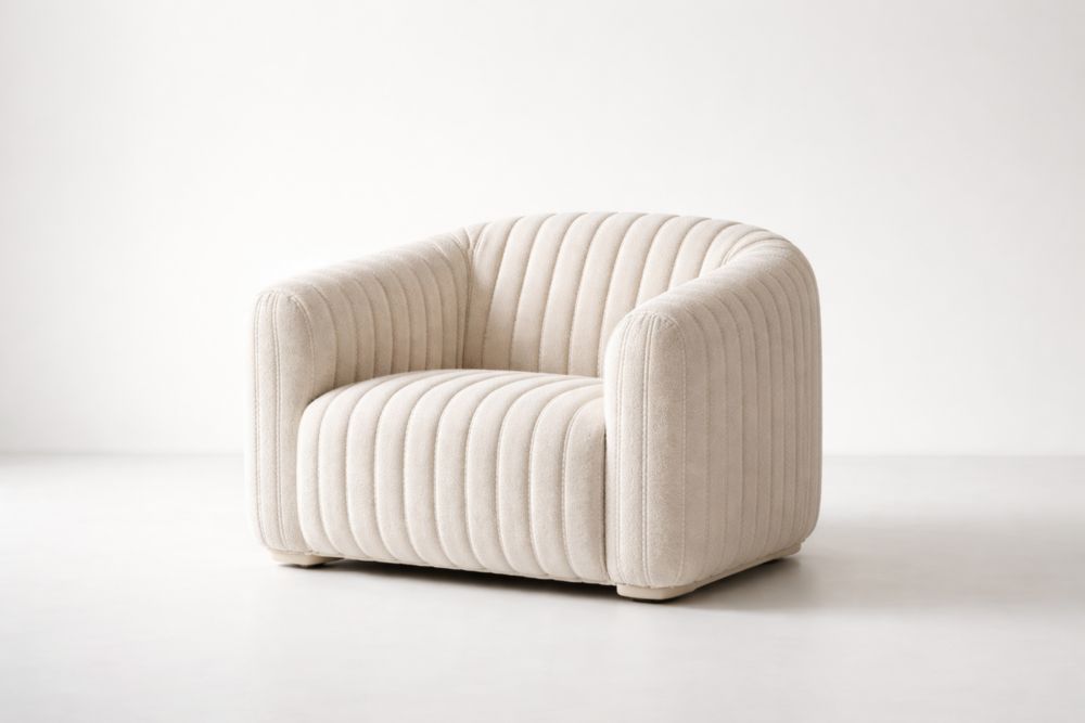Poltrona in Tessuto Poliestere Beige con Rivestimento a Coste