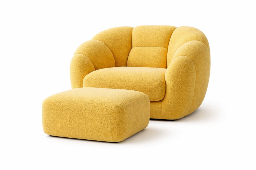 Poltrona con poggiapiedi in tessuto poliestere giallo