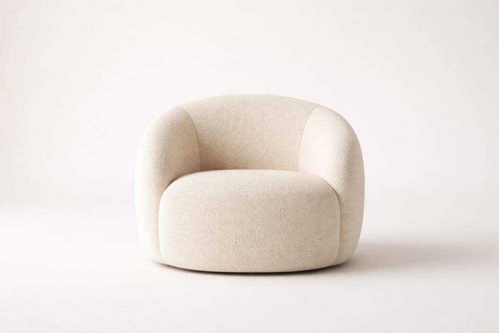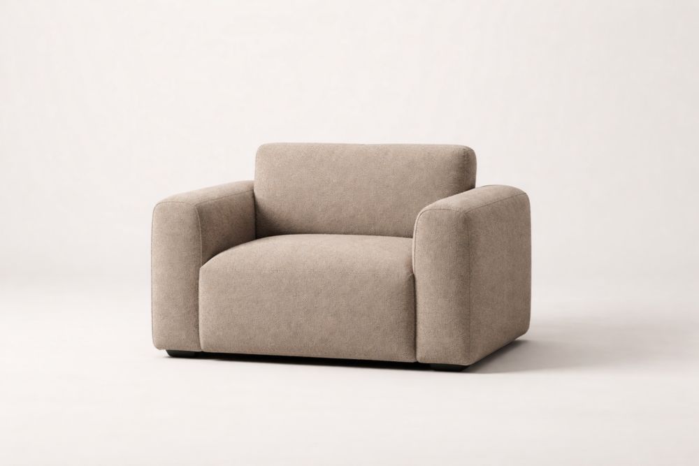Poltrona in Tessuto Poliestere Beige con Braccioli Imbottiti