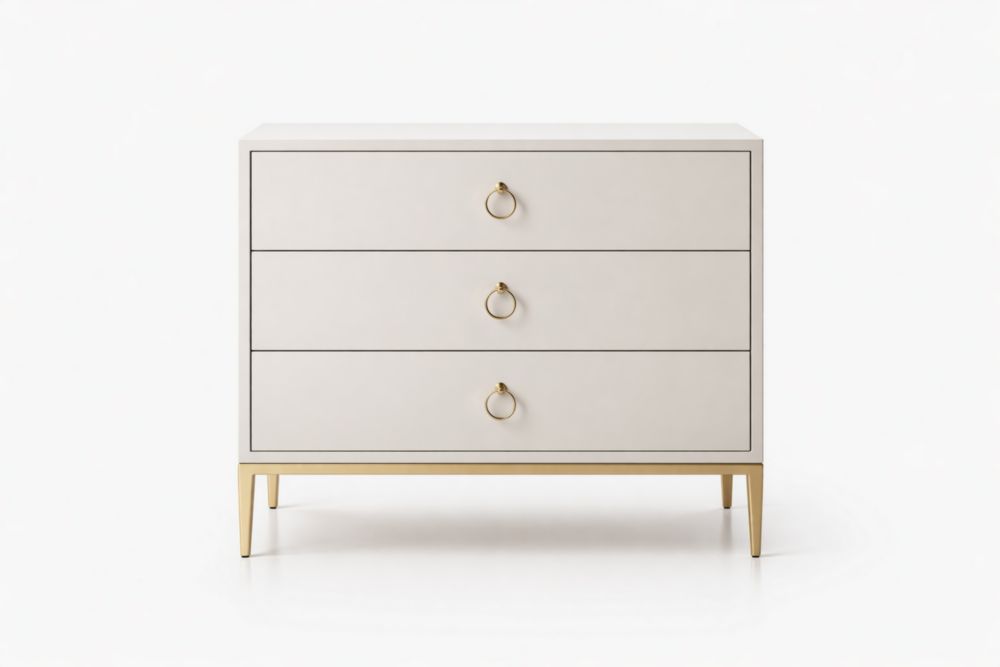 Cassettiera 3 Cassetti Legno MDF Bianco Acciaio
