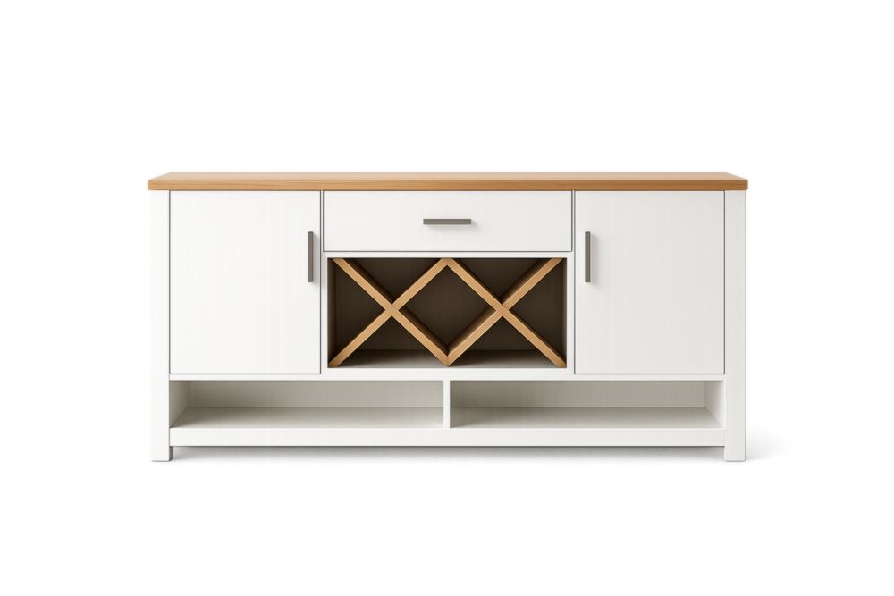 Funzioni: spazio di stoccaggio con due ante, un cassetto centrale e scomparti aggiuntivi.