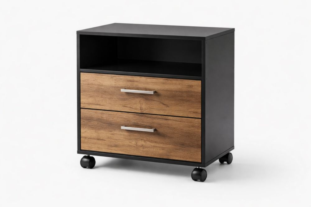 File Cabinet con cassetti in MDF e laminato nero e rovere