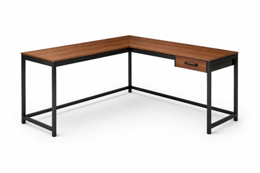 Scrivania angolare in legno MDF e acciaio con cassetto