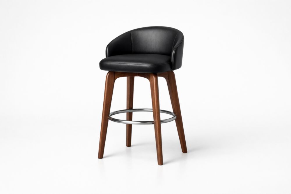 Sgabello Girevole in Similpelle con Gambe in Legno Massello e Poggiapiedi in Acciaio