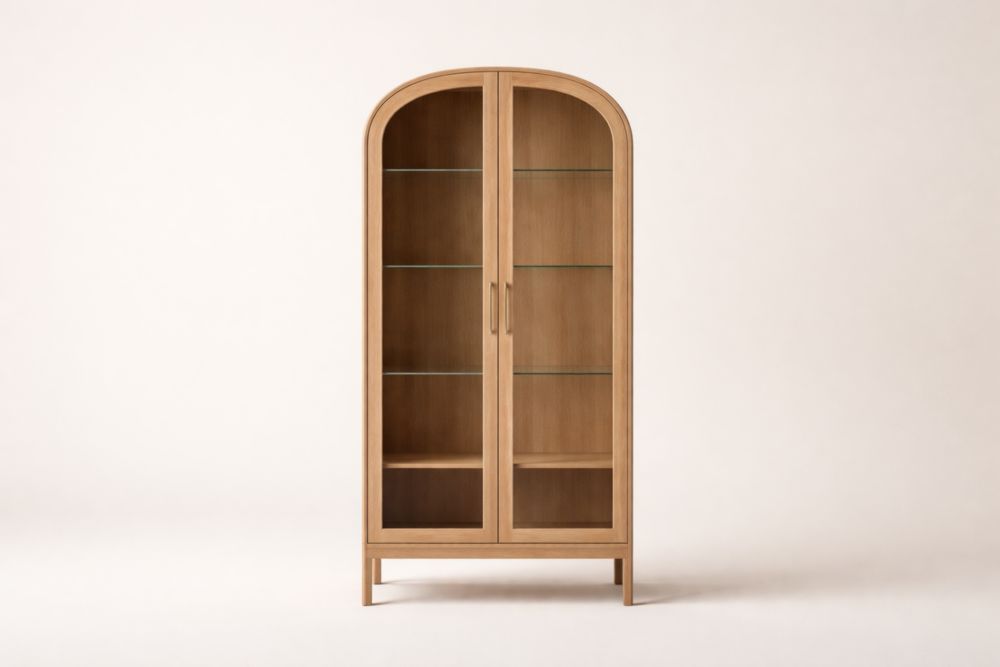Vetrina in Legno Massiccio con Ante in Vetro Temperato